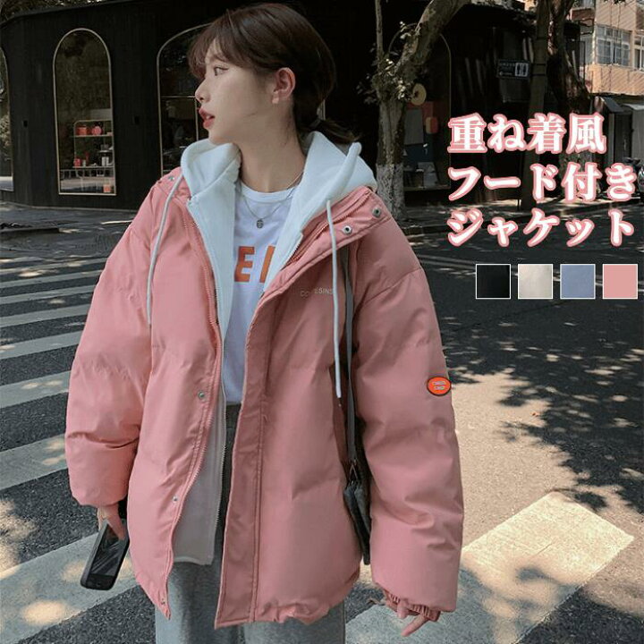 楽天市場 フード付き フェイクダウン 重ね着風 ジャケット ジャンパー パーカー ブルゾン アウター レディース カジュアル 秋冬 レイヤード風 ロゴ 防寒 暖かい あったか おしゃれ 韓国風 秋服 冬服 黒 白 春 秋 冬 ファッションの店 Kn ケイエヌ